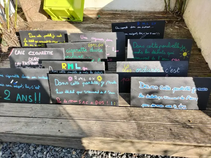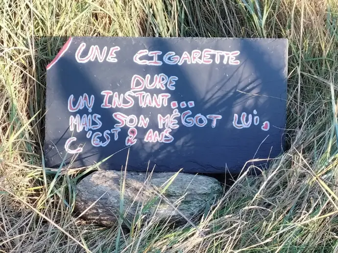 Création d’affiches, suivi des espèces, messages sur ardoise (Pointe des Chats), sensibilisation du public à la protection de l’île.